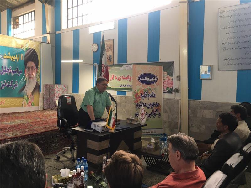 جشن تجلیل از بازنشستگان شرکت تیزپاک خراسان با حضور رئیس هیئت مدیره محترم جناب آقای مهندس احتشام، مسئولین اداره کار ،صنعت و معدن، سپاه ، مسئولین و کارکنان شرکت در روز دوشنبه مورخ 1396/02/11 مصادف با روز میلاد حضرت ابولفضل (ع) و روز جهانی کارگر در محل شرکت تیزپاک خراسان برگزار شد. در این مراسم علاوه بر تقدیر و تشکر از تمامی کارگران به طور ویژه از 4 نفر از نیروهای بازنشستگان شرکت با اهداء لوح تقدیر و هدیه تجلیل به عمل آمد. ضمنابرنامه های طنز وشاد نیز اجرا گردید.