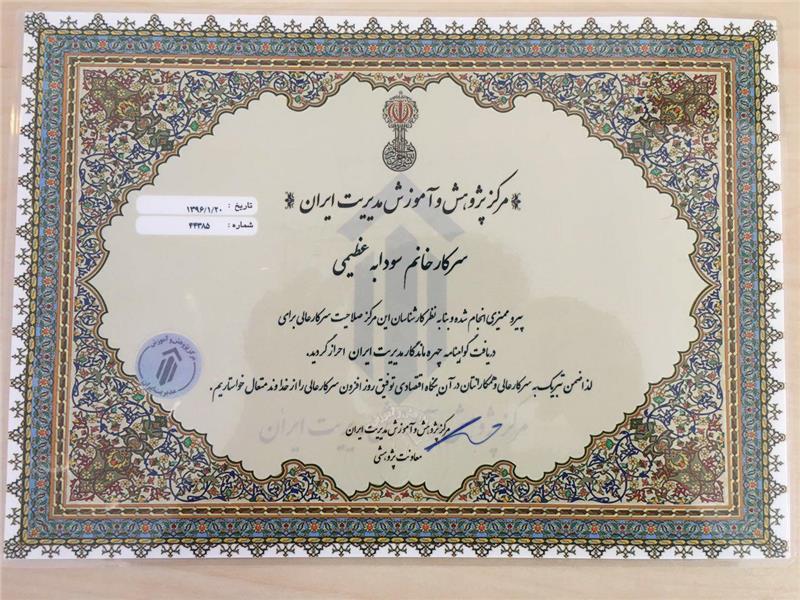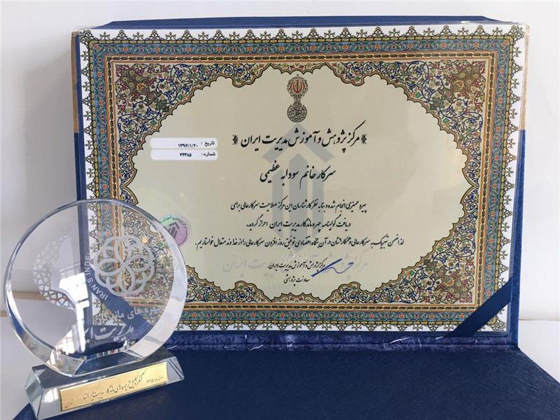 انتخاب خانم مهندس سودابه عظیمی مدیر کنترل کیفیت شرکت تیزپاک خراسان به عنوان چهره ماندگار مدیریت ایران از سوی مرکز پژوهش و آموزش مدیریت ایران