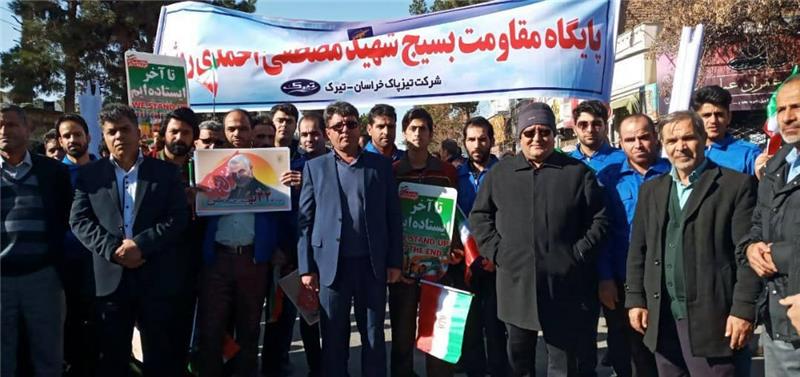 حضور پر شور مدیر عامل، مدیریت و پرسنل شرکت تیزپاک خراسان در راهپیمایی 22 بهمن 1398