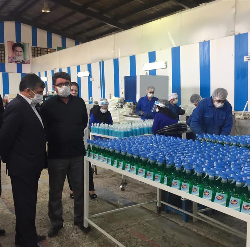 بازدید استاندار محترم خراسان جنوبی جناب آقای مهندس معتمدیان با هیئت همراه و فرماندار محترم قاین و سایر مدیران اجرایی استان و شهرستان از خط تولید محصول جدید ضدعفونی کننده دست تیرک در شرایط و بحران ویروس کرونا در کشور