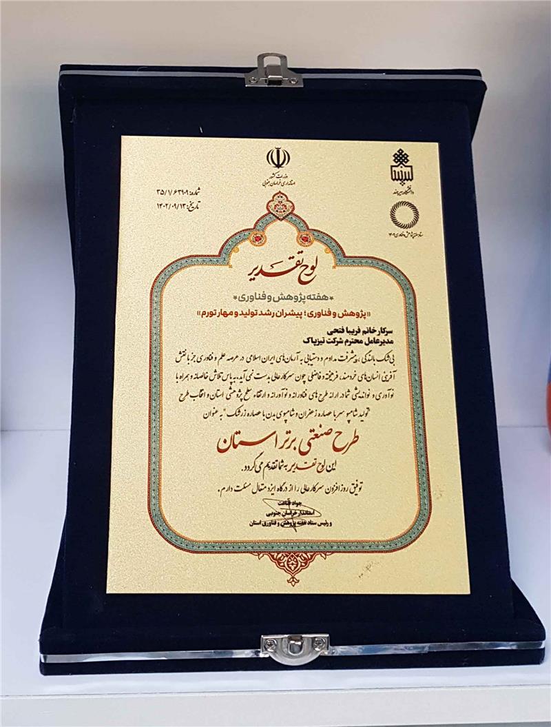 انتخاب طرح تولید شامپو سر با عصاره ی زعفران و شامپو بدن با عصاره ی زرشک به عنوان طرح صنعتی برتر استان خراسان جنوبی